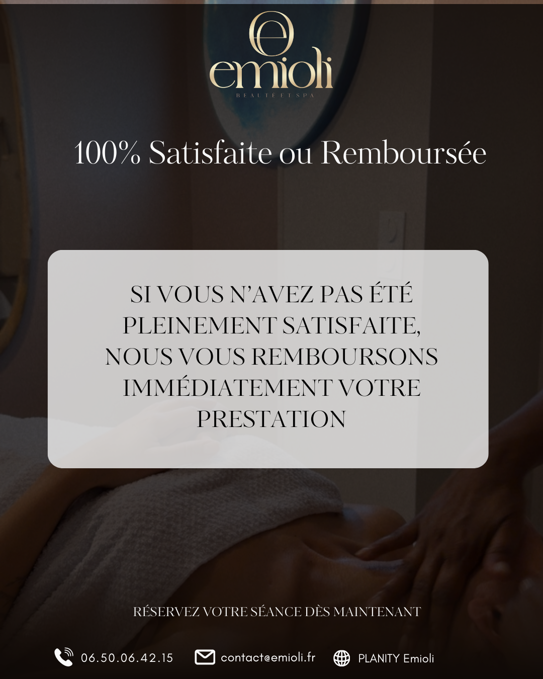 Ainsi, si vous n'avez pas été pleinement satisfaite de nos prestations, nous vous remboursons immédiatement.